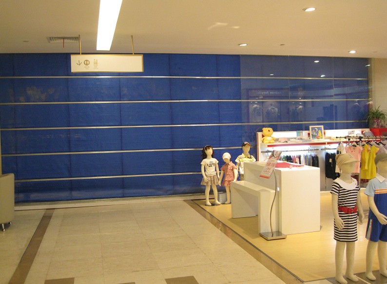 卷簾材料、配件:雙層無機簾面、導軌(兩套)、座板、卷軸(兩套)、防火卷簾用卷門機、防